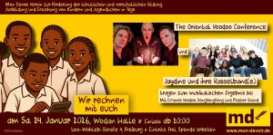 Am 24. Januar 2026 findet die nächste Benefiz-Veranstaltung in der Wodanhalle in Freiburg (Leo-Wohleb-Straße 4) statt. Es spielen die Schülerband „Jaydine und ihre Rasselbande“ und anschließend The Oriental Voodoo Conference mit Matthias Ambs (Saz/Baglama, Gesang), Harald Wendle (Schlagzeug) und Andreas Schmidt (Bass). Anschließend legen unsere bewährten DJs Ph@terSound, BengBengBeng und Voodoo auf. Einlass ab 20 Uhr.